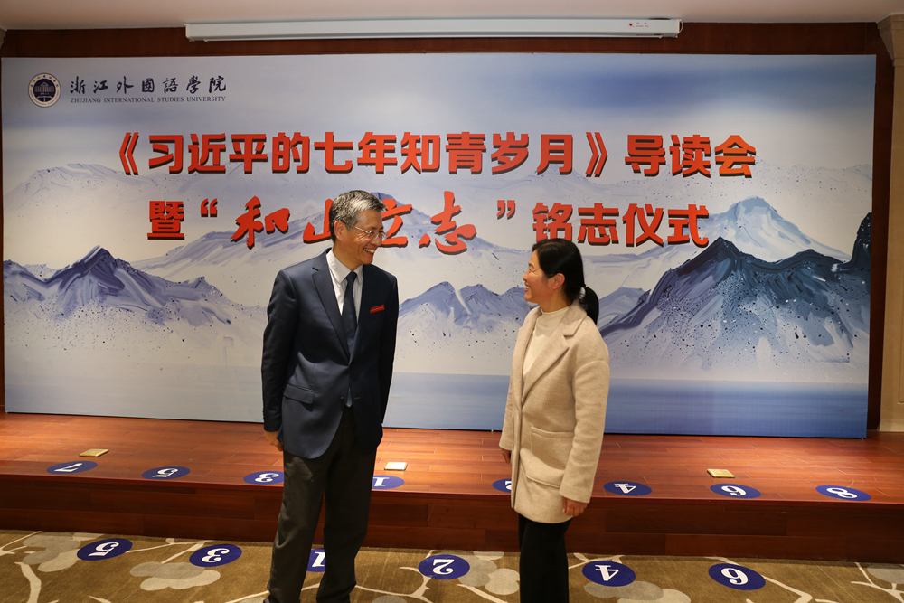 原来,这是浙外《习近平的七年知青岁月》导读会暨2019级学生“和山立志”铭志仪式现场。