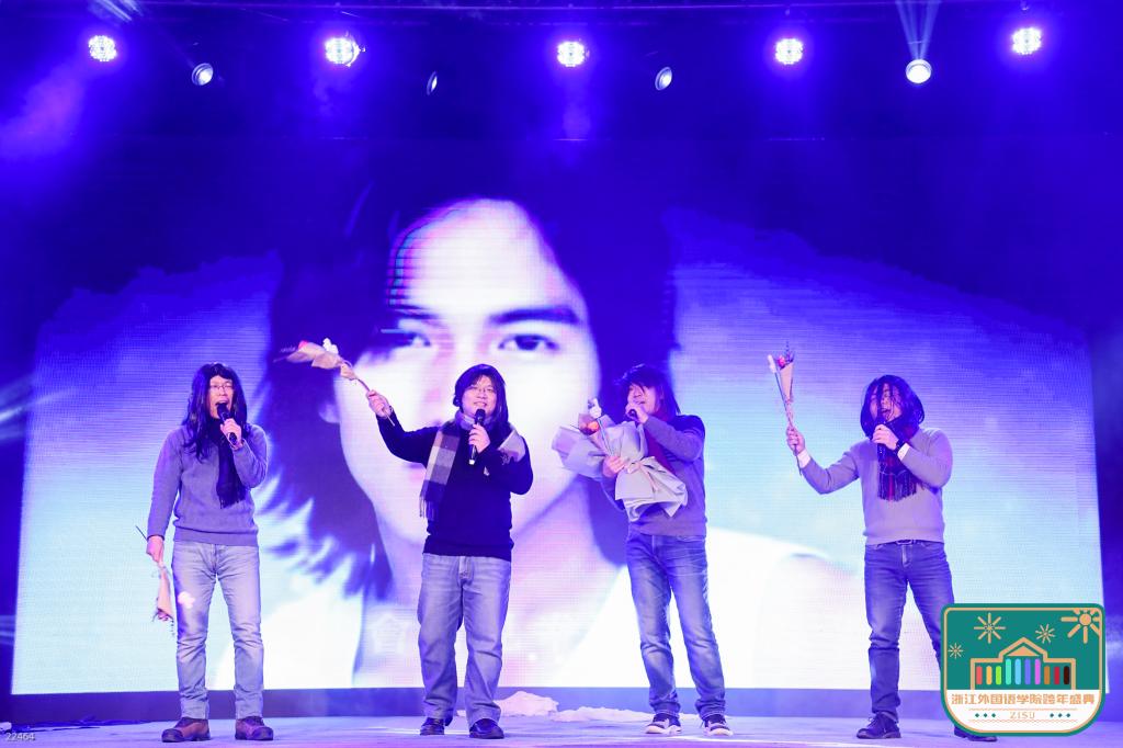 迎接2020,当然要体验“时光机”啦。坐上时光机,穿梭时空。下一个节目是“年代秀”歌曲串烧,也是本场晚会的高潮。为什么说是“年代秀”呢?原来这里不仅可以看到20代同学们的精彩演出,还有学院领导、各学院老师以及可爱的后勤阿姨、保安大叔的倾情加盟。《同桌的你》《宁夏》《倔强》……一首首充满青春回忆的歌曲在这里被唱响。此时我们不分年龄,一起手挥荧光棒开启千人大合唱!今夜,小和山最火热的必定是我们浙外人!