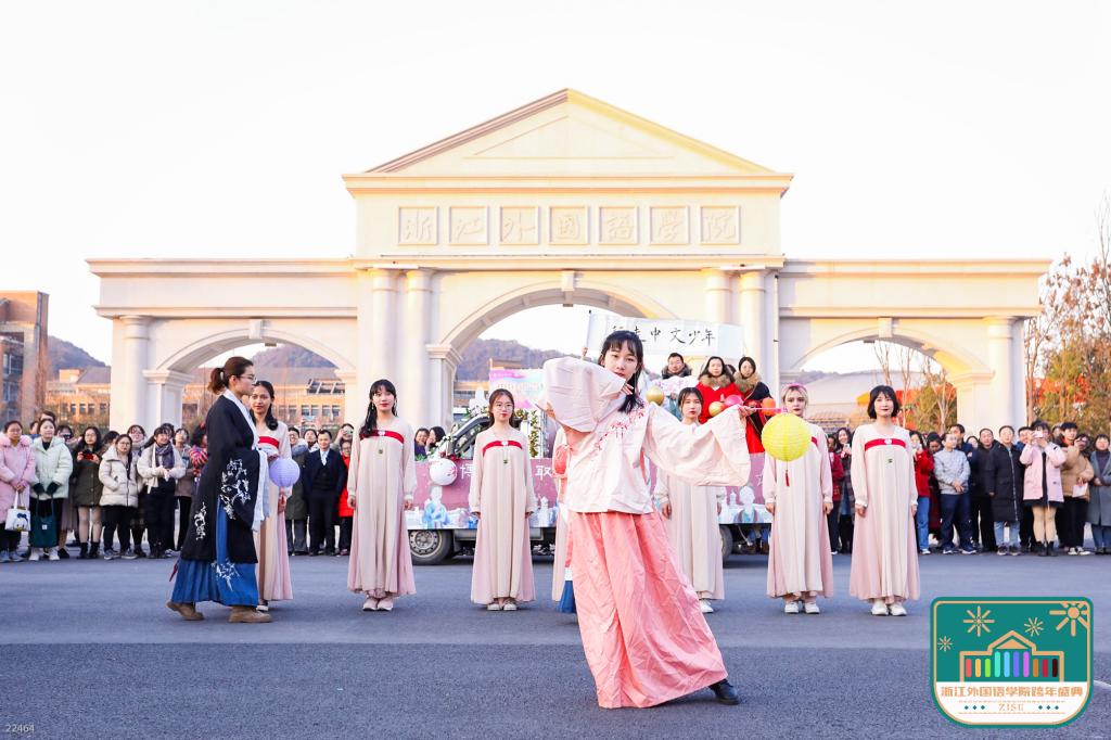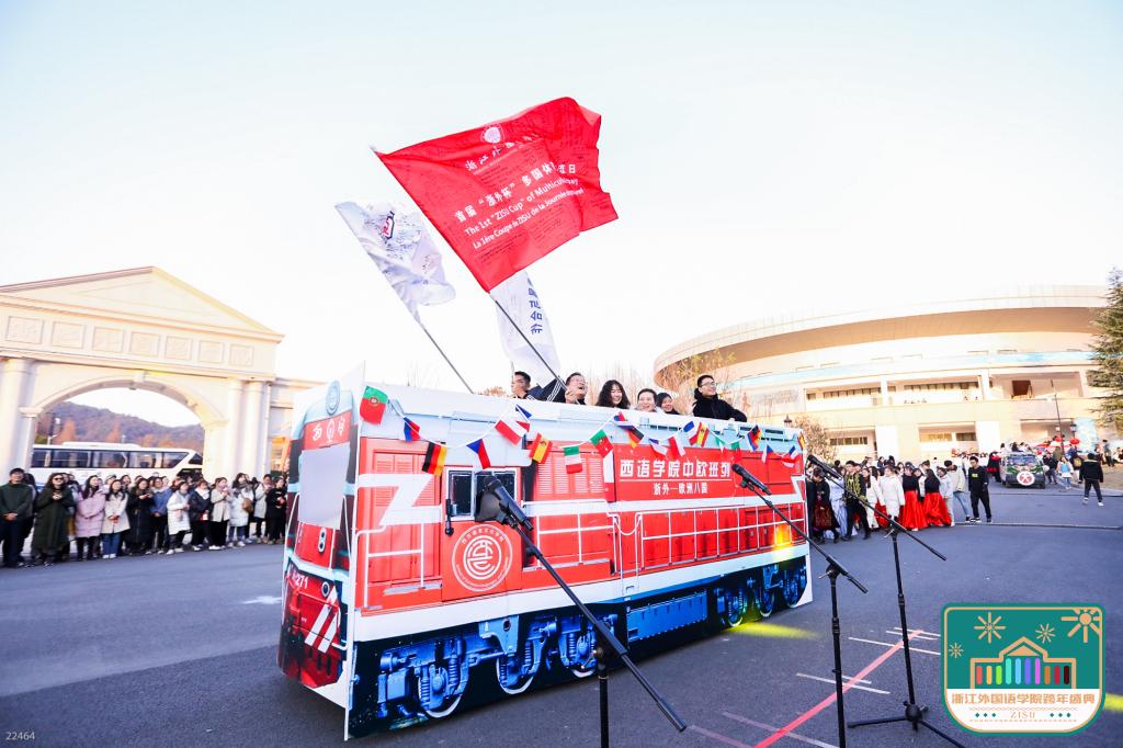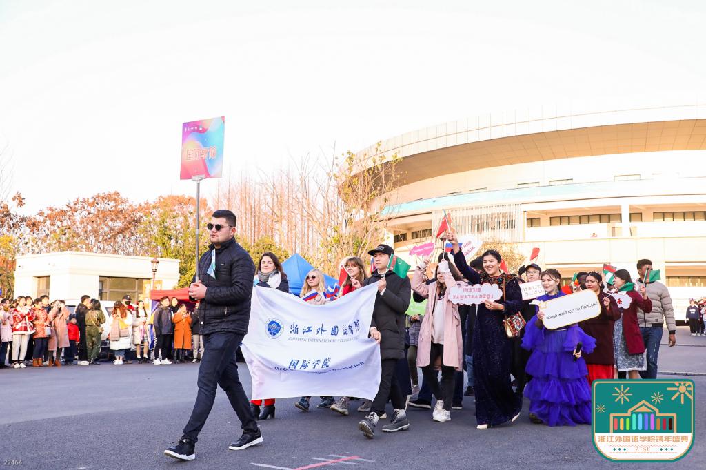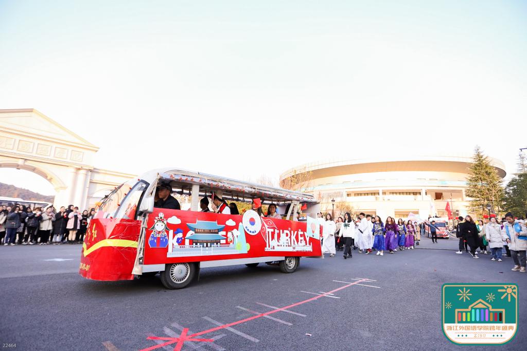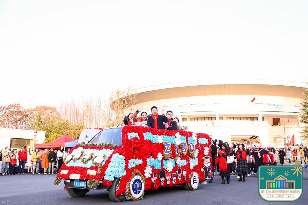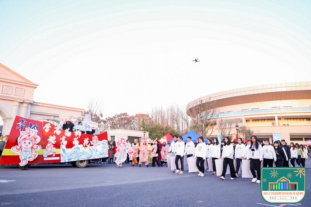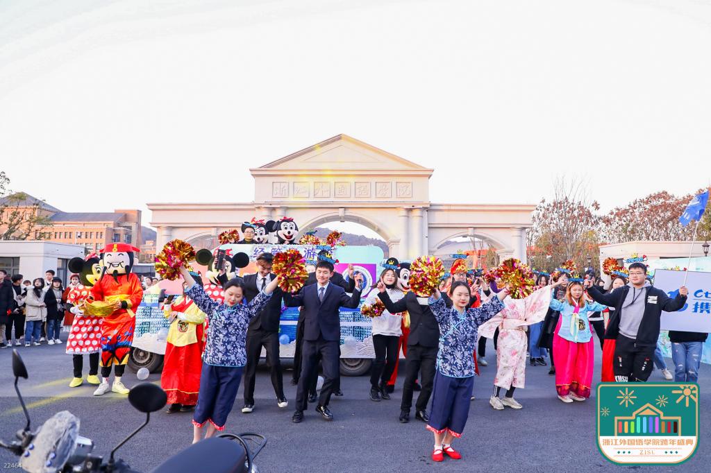 在国际学院方阵中,留学生们相约在浙外,走出了国际范儿,走出了追梦人的拼搏姿态。英文学院的“和山立志”花车,载着立志学语言、强本领、汇通中外的英文学子们缓缓驶过。紧接着是东语学院的“东方红一号”,展示了东方国家的曼妙舞姿。西语学院的“中欧班列”则联通了中国和欧洲八国,带你领略异国风情。身着古装的中文学子们将自己的新年心愿凝聚在“博观约取、言文行远”八字之中。“崇德尚博、经世济用”的经管学院花车在欢声笑语中演绎了一场精彩的情景剧。教育学院的“卓越号”在一声亲切的“同学们,上课啦”将大家的思绪带回了课堂。电商学院、科技学院为大家送上新春的祝福,祝愿新年“商通天下”。“艺术号”花车上,艺术学子们用专业特长,展示了“志道据德、依仁游艺”的风采……
