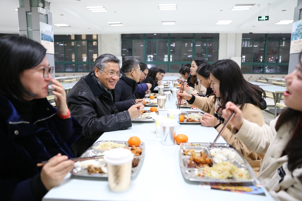 首届跨年盛典,不仅有视觉听觉上的饕餮盛宴,更有一场暖胃更暖心的校园年夜饭!校党委书记宣勇、校长洪岗等党政班子成员来到“和畅园”“和香园”餐厅,陪同学们共进年夜饭,团团圆圆迎新年。