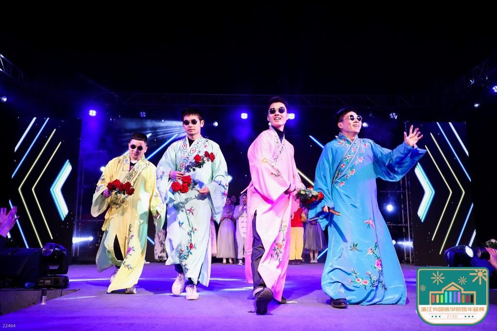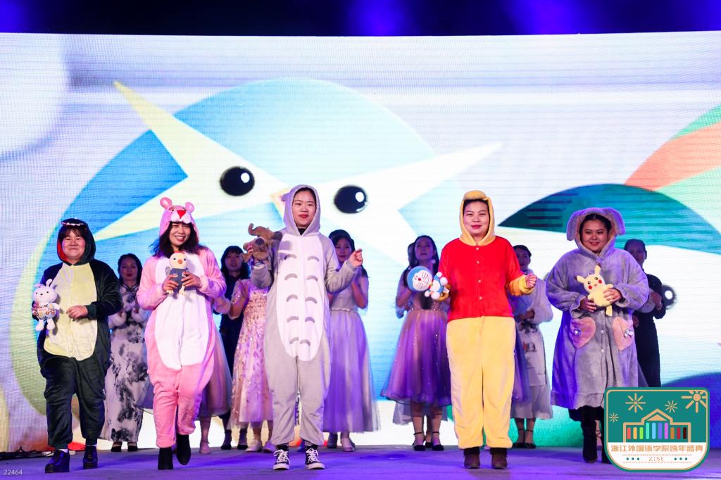 五光十色的灯光秀拉开了演出的帷幕,光影变幻中激发了观众的尖叫声、欢呼声。演出节目精彩荟萃。有健美操队、体育舞蹈队共同带来的舞蹈《Are you ready? Yes I’m ready!》,有英文、东语、西语三个学院联合带来的歌曲《起风了》,有辅导员队伍的精彩走秀……浙外师生的才华和中外文化的融合在激情上演。
