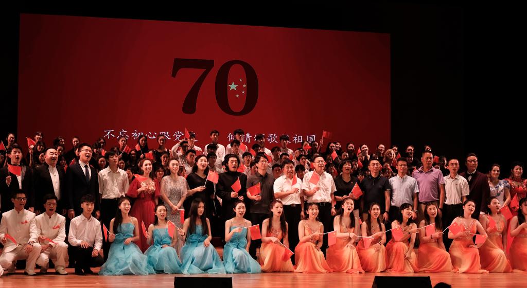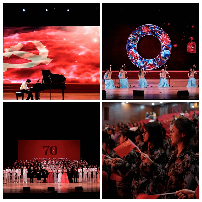 庆新中国盛世华诞,谱新时代艺术华章。9月29日晚,艺术学院“不忘初心跟党走、倾情颂歌献祖国”庆祝庆祝新中国成立70周年音乐会。校党委副书记曹仁清,纪委书记邱卫东与2019级新生军训教官及五百余名师生欢聚一堂,向祖国深情告白。