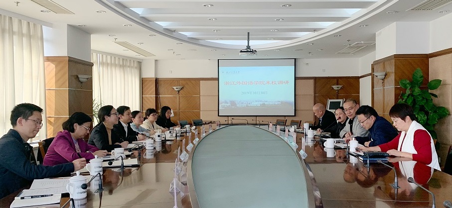 10月30日,副校长张环宙一行赴浙江工商大学调研智库建设和校友、基金会工作,浙江工商大学副校长赵英军接待了开云官网调研组一行。