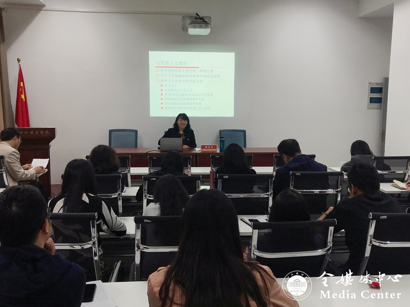 10月24日下午,副校长柴改英为应外学院全体党员上党课,题为“加强党性修养,勇担人才培养使命”。柴改英指出,党性修养是党的本质属性在党员身上的内化,也集中体现在了入党誓词里。要求每位教师通过加强理论修养、政治修养、思想修养、道德修养等四个方面,增强党性修养,勇担人才培养使命。她结合学院实际,直指人才培养和教学改革。她强调,每位党员教师都要把共产主义远大理想、中国特色社会主义共同理想和浙外的教育理想统一起来,要把教学改革落到深处,真正做到“严起来、难起来、实起来、忙起来和提起来”。她希望每位教师“知重负重、攻坚克难”,锤炼党性修养,为学校的教学改革出力,成为真正的革新者和受益者。