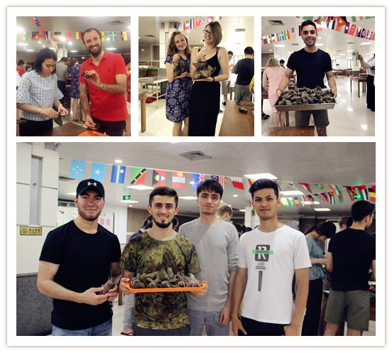 6月6日下午,教工餐厅里弥漫着清新粽香,充满了欢声笑语,60余名外教和留学生欢聚一堂与师生代表一同体验中国传统文化,共庆端午佳节的来临。副校长赵庆荣出席了文化体验活动。
