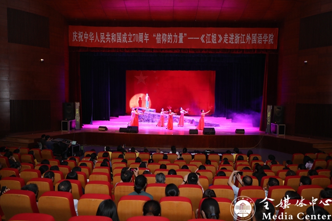 《江姐》由浙江金永玲艺术团演出。艺术家们精湛的表演将观众带回了那个千钧一发的革命年代,让大家感受到了老一辈革命者坚定的信仰和高尚的爱国情怀。金永玲女士激情澎湃的演唱,将江姐大义凛然的“刚”和对人民、对新中国无限热爱的“柔”紧密糅合,演绎出江姐坚贞不屈的革命意志和正气浩然的英雄气概,深深地感染了在场的观众们。