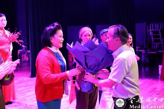 校党委副书记赵文波,党委委员、组织部、统战部部长、宣传部部长徐勇观看演出。