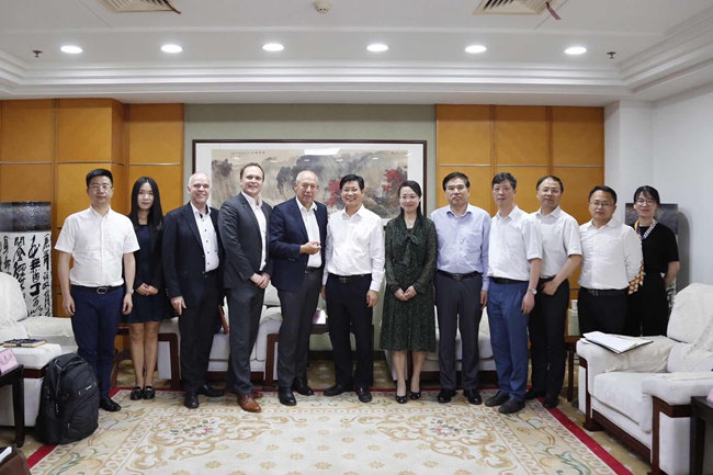 近日,省教育厅党委副书记干武东会见德国巴伐利亚州文教部职业教育与成人教育司司长登内伯格一行,省师干训中心主任、副校长张环宙应邀参加。