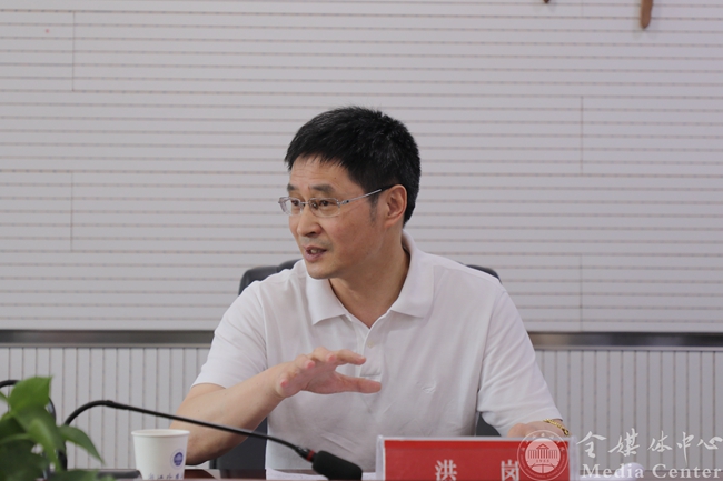 洪岗对做好申报工作提出四个要求:一要进一步认真学习教育部文件,明确一流专业建设的建设原则和报送条件,参照文件要求完善文本;二要明确填报要求的内涵,在深入理解内涵的基础上完整体现内容;三要注重文本模块的逻辑关系,厘清模块内部和模块之间的逻辑,文本具备逻辑性、系统性和规范性;四要注重突显专业的特色和亮点,突显专业的引领示范作用,体现专业“一流”建设的成效和潜力。