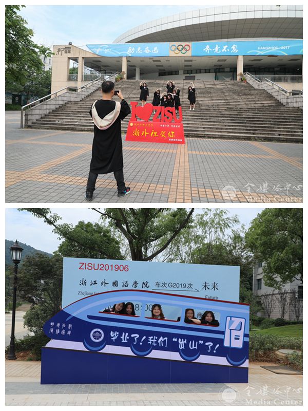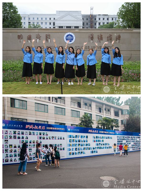 校园内弥漫着离别的伤感、对新征程的期待、对母校的依恋、对学弟学妹的祝福。行健馆大厅里,学弟学妹们现场钢琴演奏、尽情放歌,用自己的方式为毕业生送上祝福。大厅外的签名墙上,毕业生们一笔一划认真地写下对母校的深深爱意。“浙外祝贺你”2019届优秀毕业生风采荣誉展板吸睛无数,吸引大家驻足观看,激励学子们以优秀同学为榜样,砥砺前行。