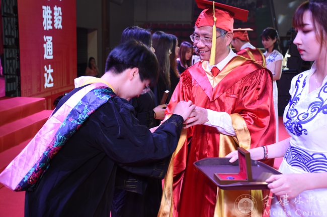 各学院教授代表、学院和部门领导、第六届我最喜爱的老师、毕业班观礼教师、辅导员、班主任和家长代表共同见证了这一重要时刻。
