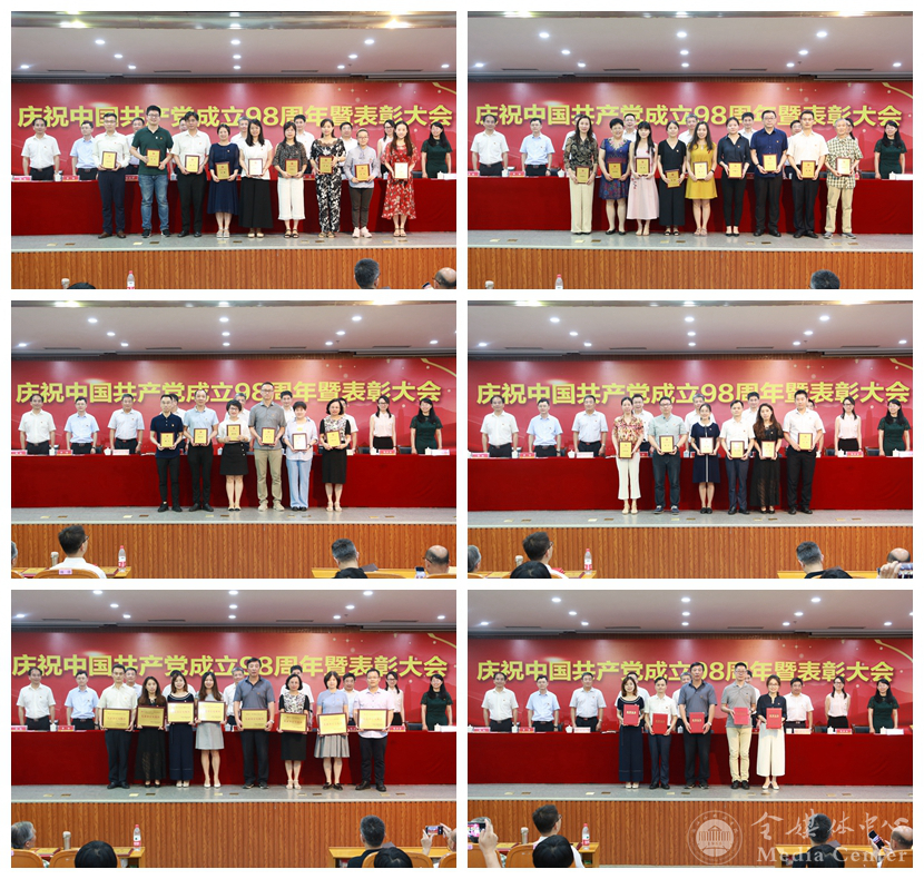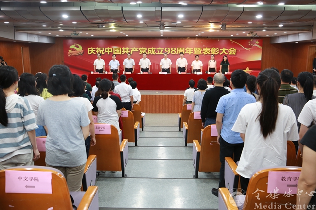 在党的生日即将到来之际,6月27日,开云官网召开庆祝中国共产党成立98周年暨表彰大会,总结经验,表彰先进,激励全校各级党组织和广大党员不忘初心、牢记使命,在建设国内知名外语特色鲜明教育品质一流的应用型高校中再创新业绩。校党委书记宣勇出席并讲话,校长洪岗宣读表彰文件。党委副书记曹仁清主持。校党政班子成员为获奖单位和个人颁奖。