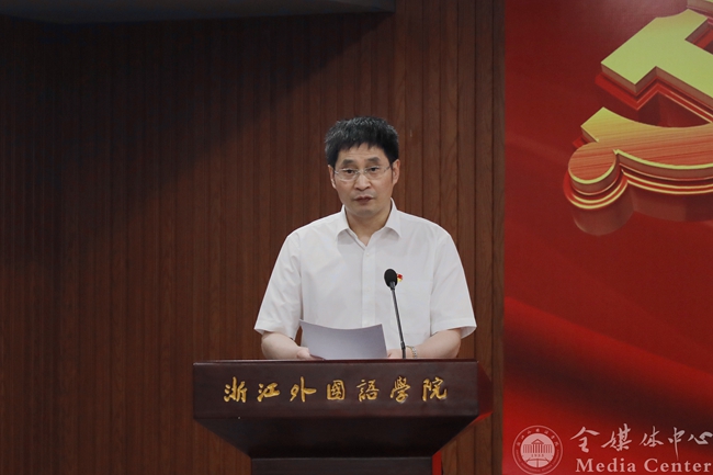宣勇在讲话中回顾了中国共产党98年的光辉奋斗历程和卓越历史贡献,新中国成立70年来取得举世瞩目的巨大成就,总结了学校在贯彻落实党的教育方针、加强和改进党的建设等方面的特色做法和积极成效:东语学院党总支扎实推进“二级学院党组织领导下的院长负责制”改革试点工作;西语学院党总支积极探索“党建+专业”的思政工作新模式、国际化创新创业人才培养模式和校企联合培养人才模式;教育学院党总支积极打造青年党员志愿服务基地,为学生成长成才搭建更多实践平台;体育部直属党支部党员教师全员担任指导老师,指导学生体育社团发展;机关党总支宣传部党支部统筹推进“青年学子学青年习近平”学习教育,宣传思想文化工作成效显著;英文学院党总支翻译系学生党支部注重科研引领,打造富有翻译特色的学习型党支部;电商学院、科技学院党总支科学教育系教工党支部积极探索“党建+”,“互联网+”发展模式,形成一支以培养学生师范技能为目标的党员教师团队,获“全国党建工作样板支部”;马院党总支教工第一党支部积极打造“探美浙江,实践育人”党建特色品牌,探索推动大学生思想政治教育质量提升。还有学校各条战线上涌现出来的好干部、好同志们,他们坚决贯彻落实党委决策部署,担当作为,有的敢抓敢管、敢破敢立,攻坚克难,推进改革落地见效;有的内抓管理、外抓协调,为学校争取资源、项目和资金;有的立足岗位,积极作为,精细管理,取得明显效益……