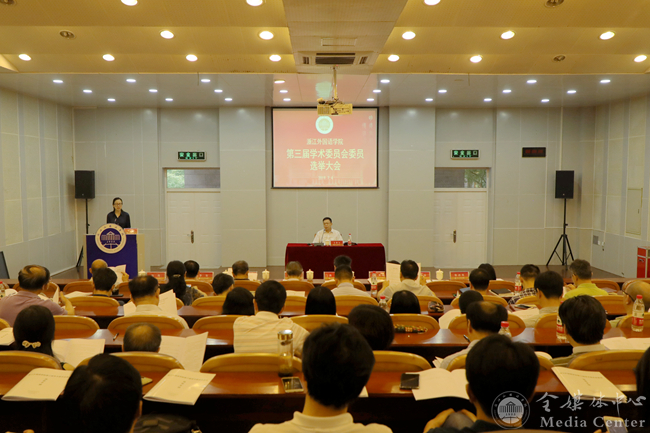 张环宙作第三届学术委员会委员推选过程情况说明。她指出,校学术委员会委员候选人是根据相关规定,兼顾工作需要、学科结构及专家学者的广泛参与等情况,并经历了候选人名额确定、二级学院(部)推选、校长办公会议审定、学校公示后产生的。