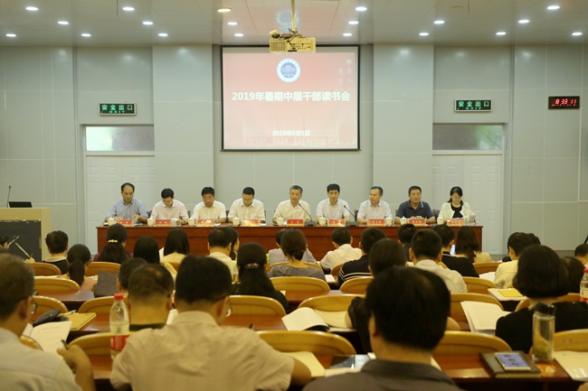 9月5日,学校召开暑期中层干部读书会。会议分为新学期工作部署、2019年学校招生录取情况通报、学校人才培养过程中存在问题的报告,分组讨论与交流,总结讲话五个阶段,分别由校党委书记宣勇、校长洪岗主持。宣勇对新学期工作作重点要求。洪岗作上学期工作总结和新学期工作部署。校党政领导班子成员,全体中层领导干部参加会议。