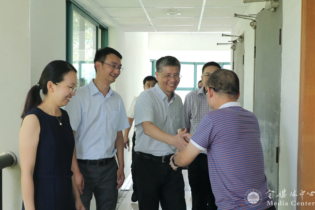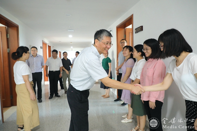 宣勇等校领导先后走访了战略处、审计处、组织部、宣传部、人事处、科研处、国际处、英文学院、图书馆、工会、信建处、合作处、评估处等单位,亲切询问广大教职员工搬入新楼的相关情况并给予新学期的问候。宣勇仔细听取了各单位负责人开学准备工作情况的汇报,并就发展战略、组织宣传、科研师资、社会服务、教学监控等方面进行了工作指导。宣勇勉励教职员工要不忘初心、牢记使命,凝心聚力、砥砺奋进,以全新的精神面貌和饱满的精神状态投入到新学期的工作中去,为学校发展贡献新的力量。