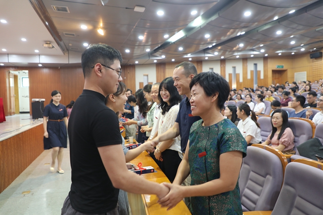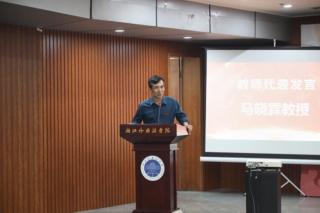 知名国际问题专家、WHMJ(SGYP)、国家 WR 哲社科领*/军、“西溪学者”杰出人才、阿拉伯语教授马晓霖作为新入职教师发言,他以学者的谦逊、以长者的仁爱,表达出为师者的初心与使命。