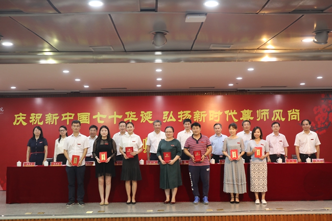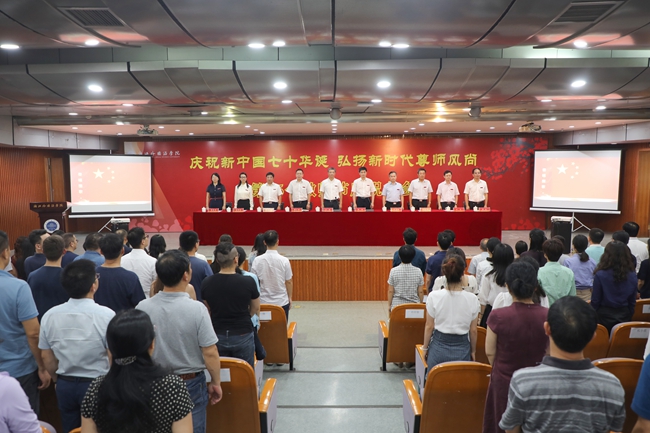 宣勇强调,百年大计,教育为本;教育大计,教师为本。新中国成立70周年来,党和国家高度重视教育事业,出台了系列讲话和举措,进一步深化了全党、全社会对中国特色社会主义教育事业的规律性认识,体现了我们党念兹在兹的教育情怀,彰显了我们国家尊师重教、崇智尚学的价值追求。今年教师节的主题是“庆祝新中国七十华诞,弘扬新时代尊师风尚”,全校要尊重教师、关爱教师、依靠教师,保持激扬的干事创业热情,营造新时代尊师风尚。