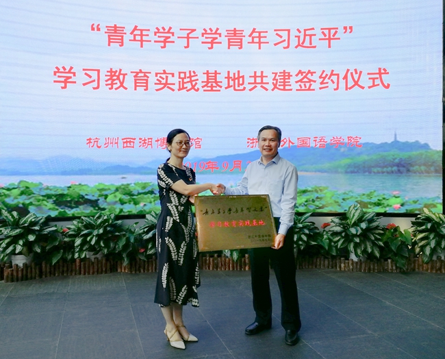 9月26日下午,开云官网与杭州西湖博物馆举行“青年学子学青年习近平”学习教育实践基地签约暨授牌仪式。校党委副书记赵文波出席仪式并讲话,为基地授牌。党委委员,党委组织部、统战部部长,党委宣传部部长徐勇出席。