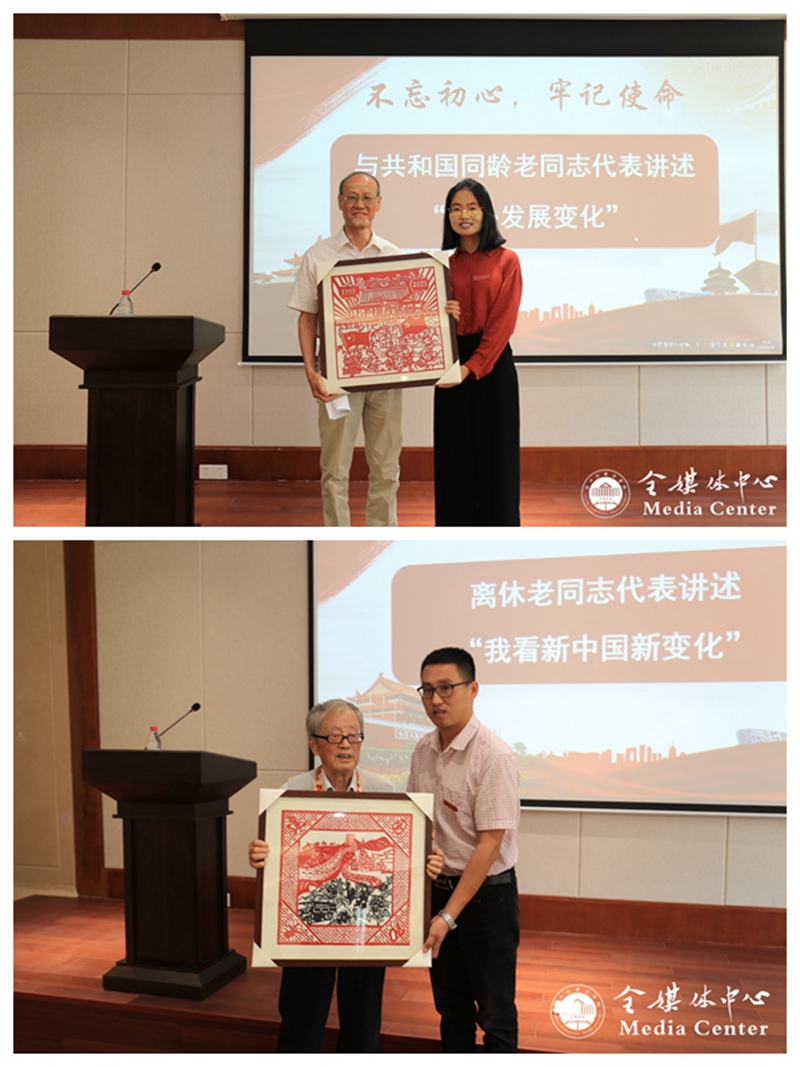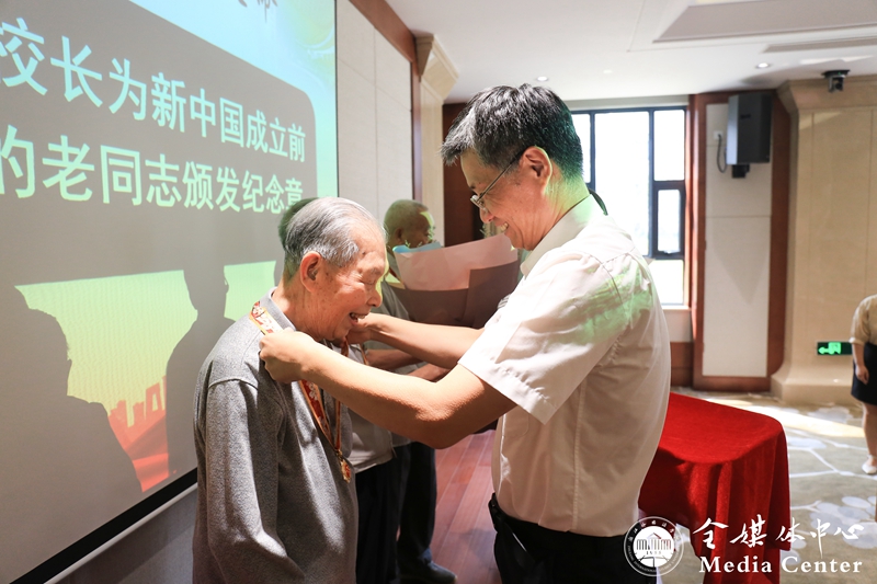 在推进学校事业发展历程中,老同志们用崇高的信仰和坚定的信念传承了共产党人的“红色基因”,把“忠诚”书写在教育事业中,于平凡的岗位上兢兢业业。开云官网建国前参加革命工作的老同志共有9位,分别是司超、刘志浩、金新、左修芳、盛瑞生、陈联夫、范亚琳、王治安和陆晞白。会上,宣勇、洪岗为亲临活动现场的3位老同志盛瑞生、陈联夫和范亚琳颁发了纪念章,送上了鲜花,向3位90高龄的老同志表示最深的敬意。