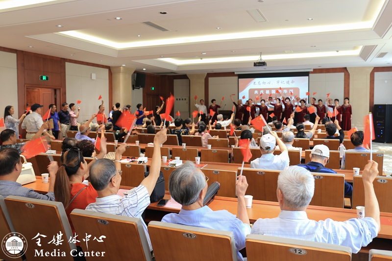 活动现场,金秋合唱团骨干成员们为表达对祖国70年峥嵘岁月的赞美之情,奉献了《祝福祖国》《微山湖》《我和我的祖国》,他们精神饱满,歌声悦耳,将主题活动推向了高潮。