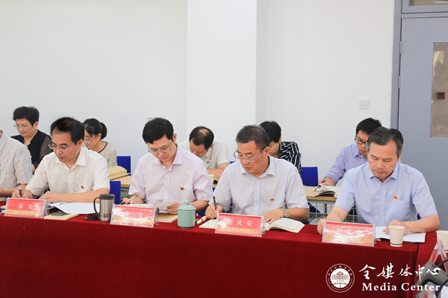 省委第十二巡回指导组组长、省人大常委会委员、省人大教科文卫委员会副主任委员、省社科联副主席梅新林,组员许晓春出席会议。校党委书记宣勇、校长洪岗等校党政领导班子成员,校党委理论学习中心组成员、联学单位机关理论学习中心组成员,以及相对应每个专题的相关学院班子成员参加学习会。