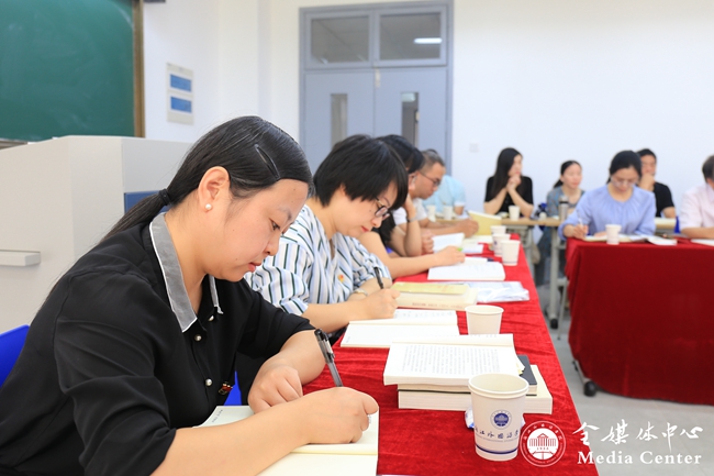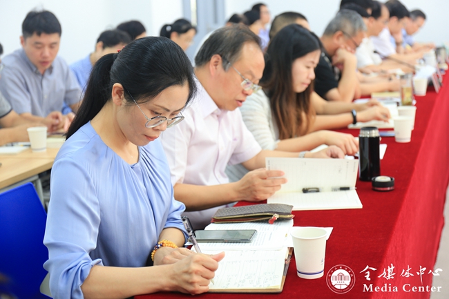 部分机关理论学习中心组成员,经管学院、英文学院、东语学院、西语学院等二级学院党总支负责人先后作交流发言。