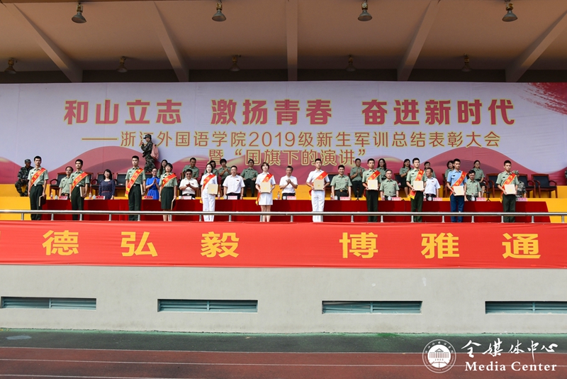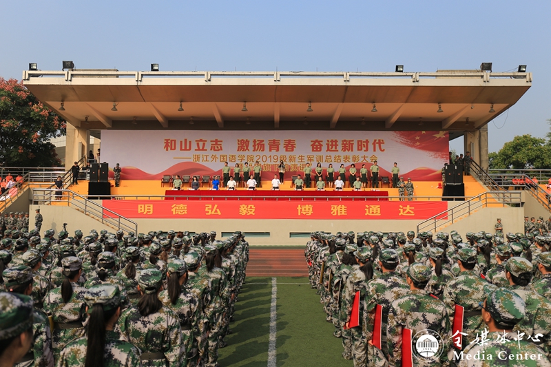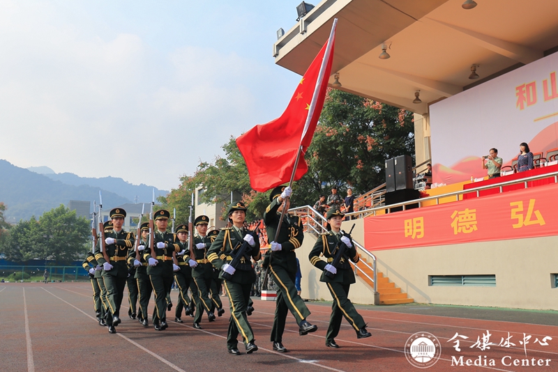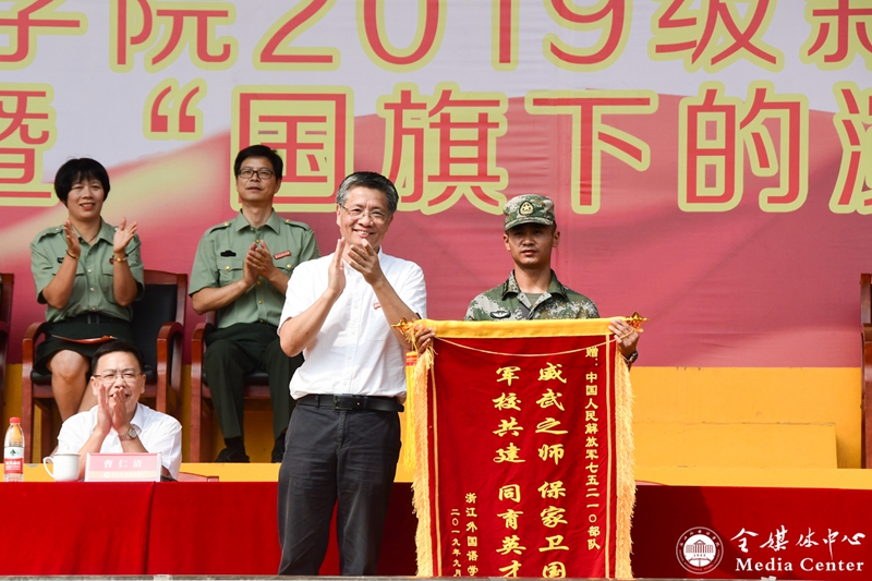 和山苍苍,秋风送爽。在这美丽的秋色里,在庆祝新中国成立70周年的喜庆气氛里,在学校开展“不忘初心、牢记使命”主题教育的浓厚氛围中,学校举行2019级军训总结表彰大会暨“国旗下的演讲”活动,以昂扬的斗志和青春的热情致敬青春、献礼祖国。校党委书记宣勇、校长洪岗等党政领导班子成员出席。承训部队全体官兵参加大会。校党委副书记赵文波主持。