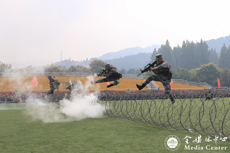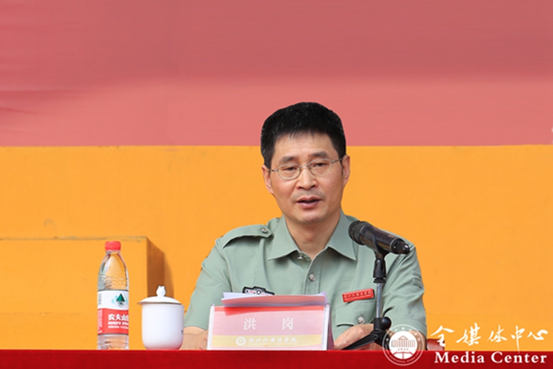 “让我们把最热烈的掌声献给我们最可爱的教官们!”“我十分欣慰地看到,经过严格训练,你们的爱国热情更加饱满,精神意志更加坚韧……”洪岗在总结讲话中,对承训官兵表示衷心的感谢,向圆满完成军训任务的同学们表示祝贺。