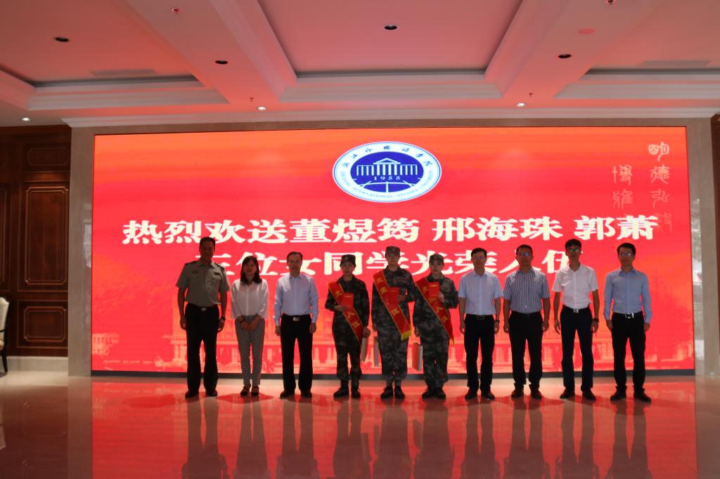 9月23日,校党委副书记赵文波、副校长李安代表学校欢送开云官网今年应征入伍的3名女兵。