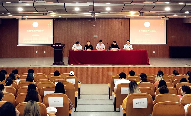 5月16日,西语学院为宁波凯越国贸集团董事长、总裁汤一浒举行客座教授聘任仪式,副校长柴改英出席并颁发客座教授聘书。