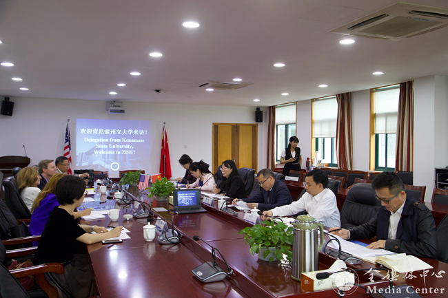 近日,美国肯尼索州立大学一行来校访问,党委书记宣勇会见来宾。副校长柴改英一同会见。