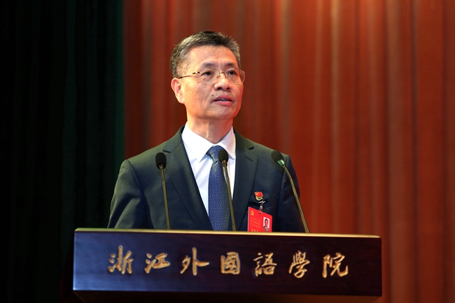 新时代需要新担当。我们必须顺应时代发展,把握时代机遇,着力培养国际化人才、建设高端智库、推动中华文化传播,在新时代开放发展大局中体现“浙外担当”。新要求需要新贡献。我们必须贯彻习近平总书记对教育工作提出的一系列新理念新思想新观点,加快推进内涵式发展,着力提升教育品质,全面深化校内综合改革,在培养担当民族复兴大任的时代新人中作出“浙外贡献”。新使命需要新力量。我们必须积极主动回应浙江发展新需求,为推进开放强省战略提供有力支撑,在助推浙江“勇当‘一带一路’建设排头兵”的重大使命中显示“浙外力量”。
