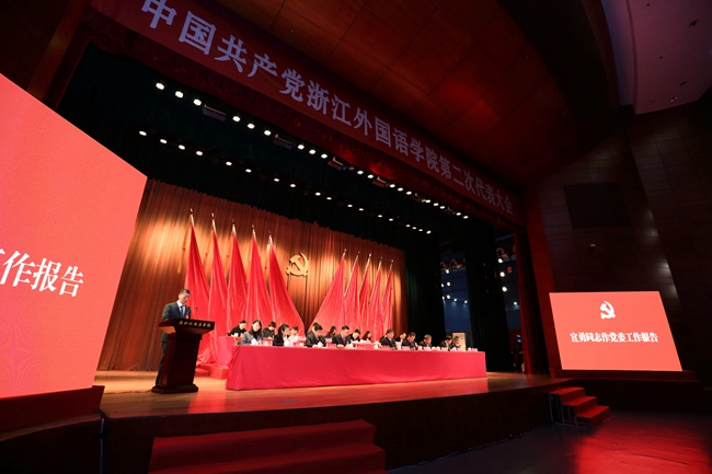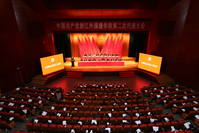 筑梦新时代,担当新使命。本次大会是在中国特色社会主义进入新时代,我省“两个高水平”建设迈上新征程,学校全面深化综合改革、着力提升教育品质的关键时期召开的一次十分重要的会议。大会的主题是:高举习近平新时代中国特色社会主义思想伟大旗帜,以党的十九大精神为统领,全面贯彻落实浙江省第十四次党代会精神,团结动员全校党员和师生员工,增强“四个意识”,坚定“四个自信”,主动对接国家“一带一路”建设,积极服务开放强省战略,以立德树人为根本,坚持内涵式发展,不忘初心,牢记使命,锐意改革,真抓实干,为把学校建设成为国内知名外语特色鲜明教育品质一流的应用型高校而不懈奋斗。