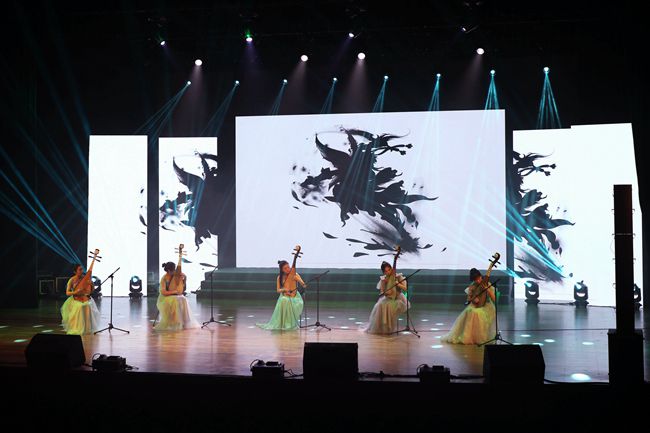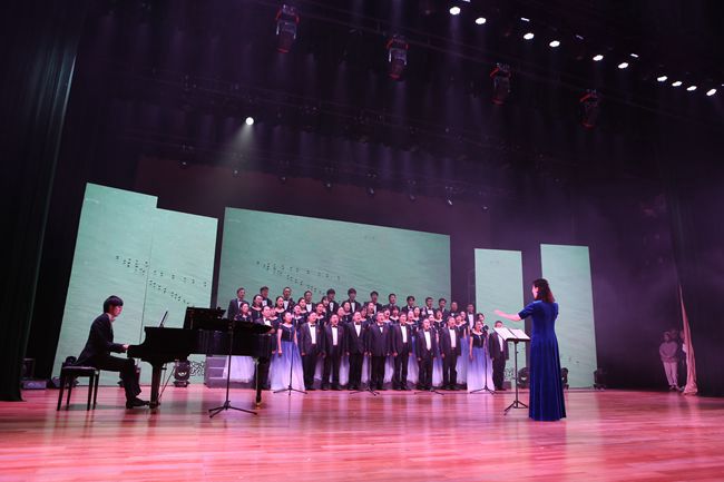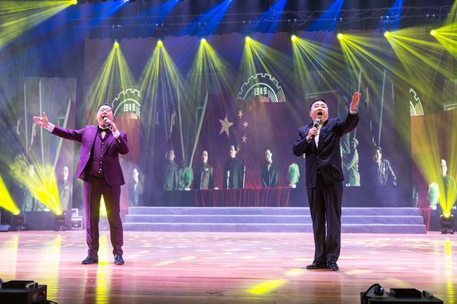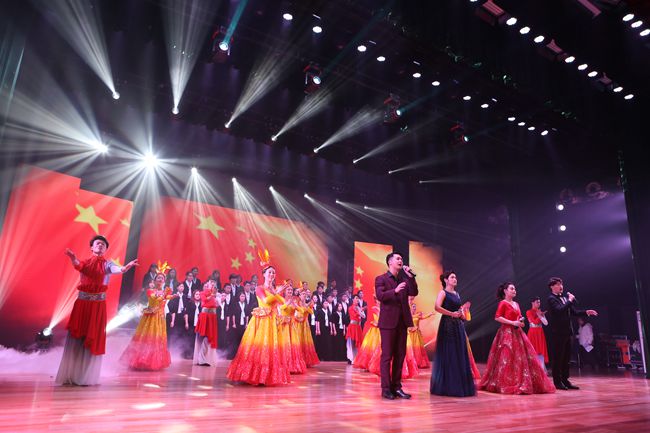 晚会分为“不忘初心,砥砺新征程”“凝心聚力,奋进新时代”“锐意进取,追逐新梦想”三个篇章,以歌唱、舞蹈、乐器演奏等形式展开,高雅丰富,精彩纷呈。在极具传统文化元素的打击乐表演《龙的腾飞》中,晚会拉开了帷幕。