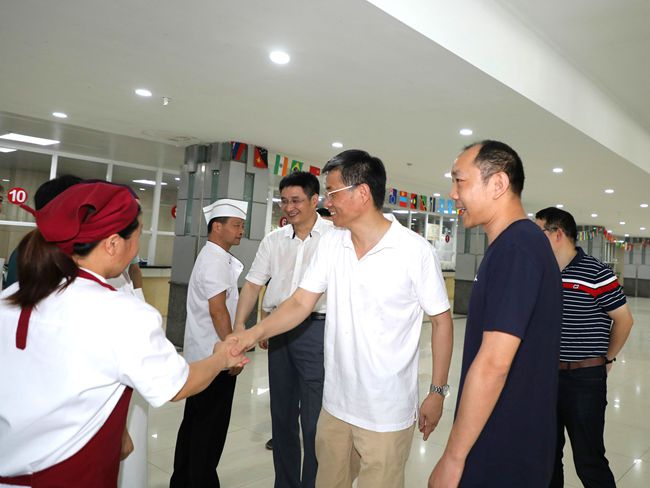 在雅致苑与和香餐厅走访时,宣勇、洪岗听取了相关负责人关于学生宿舍修缮、屋顶维修等情况汇报,并嘱咐大家在做好工作的同时,注意防暑降温。