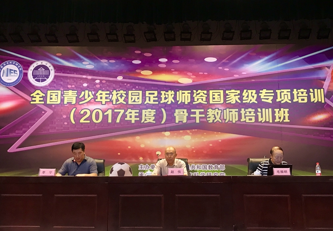 9月13日,全国青年少校园足球师资国家级专项培训(2017年度)骨干教师培训班举行开班仪式。校党委副书记赵伐出席并讲话。教育部中小学体育指导委员会副主席、北京师范大学博士生导师毛振明教授出席。