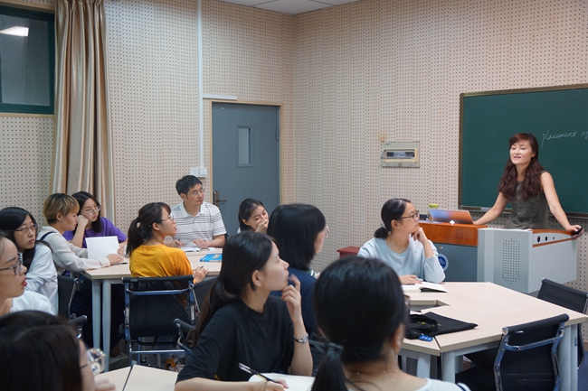 宣勇与同学们一起认真聆听了教育学院李涛老师讲授的《小学班主任工作》,边听边认真做听课记录。宣勇与授课教师亲切交流,对授课教师的精神状态、教学方法和教学内容等方面给予了肯定。
