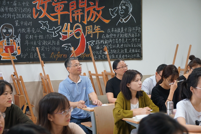 洪岗与同学们一起认真聆听了英文学院王璟老师讲授的《计算机辅助翻译》。洪岗与师生们亲切交谈,认为教师备课认真,学生听课投入。