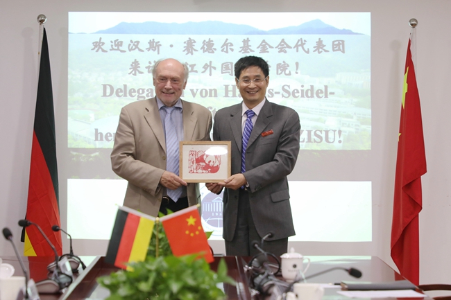 近日,德国汉斯·赛德尔基金会东北亚及中亚处处长维利·朗格先生一行来校访问。校长洪岗会见来宾并致欢迎辞,校党委副书记赵伐主持会议。
