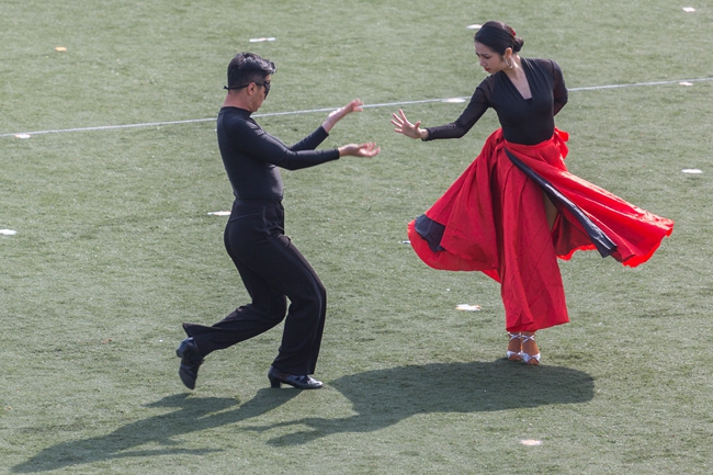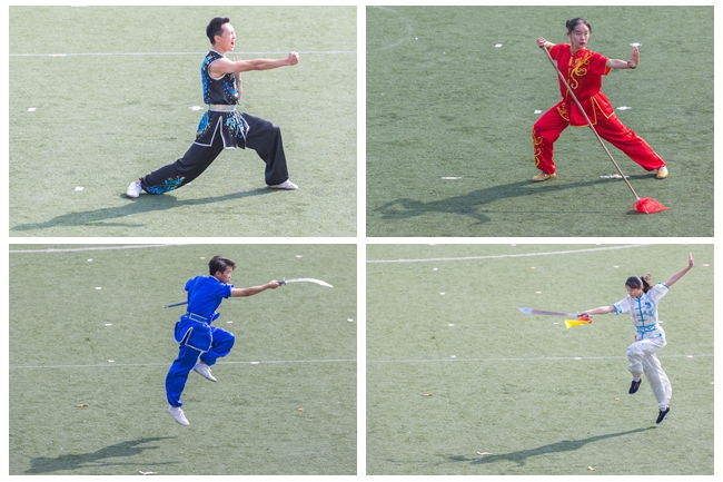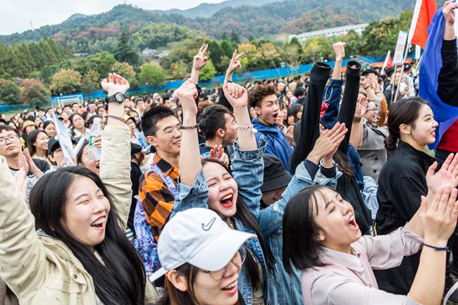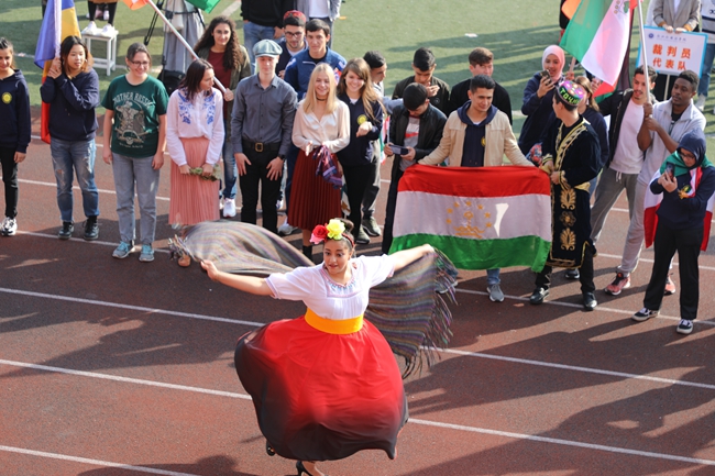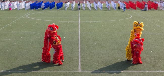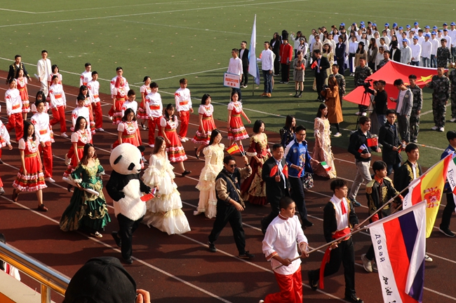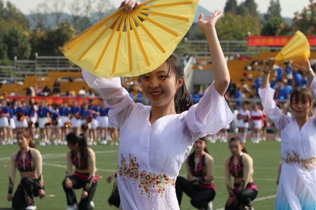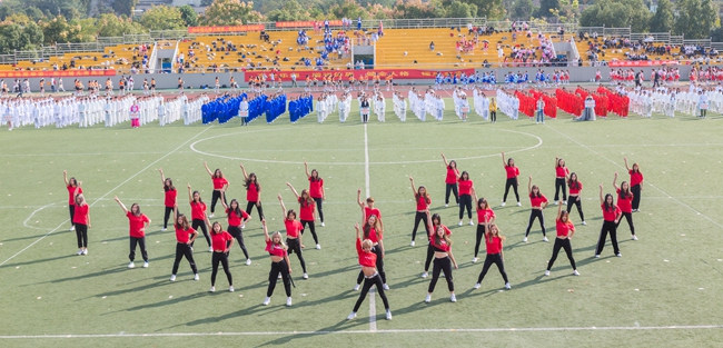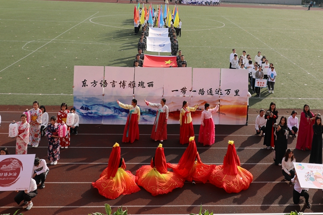 入场式上,学校各部门、各学院代表队,用独具特色的体育文化展示给大家带来了一场视听盛宴。或传统,或现代,或东西交融,或中外荟萃,以蓬勃的面貌、国际化的元素彰显外语外贸类院校的英姿和风采。还有吸人眼球的传统体育表演赢来观众阵阵喝彩。精彩的舞狮、琵琶演奏、剑术表演以及刚柔并济的太极拳比赛展现了中华传统文化的奥妙;活力四射的《卡路里》街舞表演、健美操比赛展示了浙外人的青春与热情。