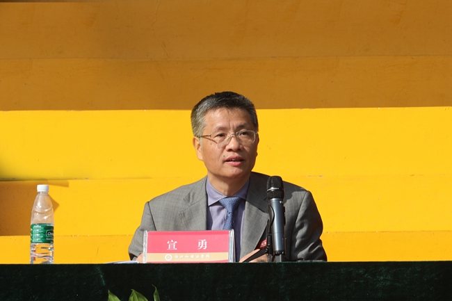 宣勇希望全体运动员秉承卓越理念,弘扬更快更高更强的奥运精神,赛出风格、赛出水平,争创优异成绩;希望全体裁判员文明、公正、公平裁判;更希望全校师生员工以运动会为契机,进一步提高健康意识,磨砺精神品格,敢于拼搏,不懈进取,助力学校教育事业的发展,助力中华体育强国梦的实现,助力新时代中国特色社会主义事业的建设!