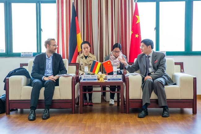 10月19日上午,校长洪岗会见德国博世基金会全球教育总监米歇埃尔·威德曼博士。
