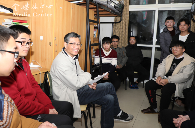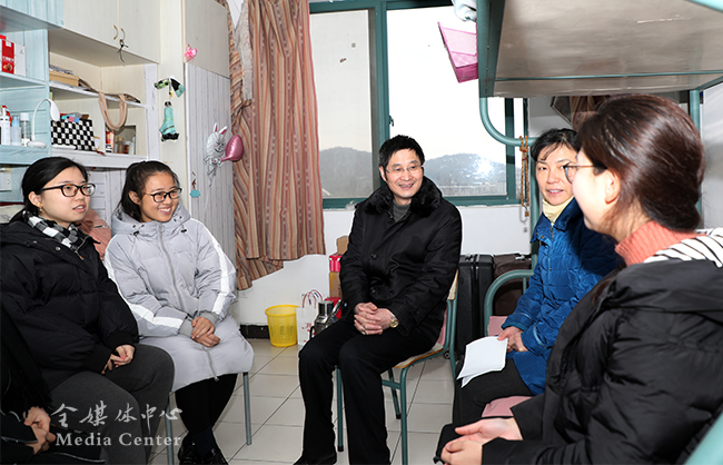 新年伊始,入冬渐寒,学校党政领导班子成员走访了各学院学生寝室,了解学生学习生活情况,致以新年祝福。