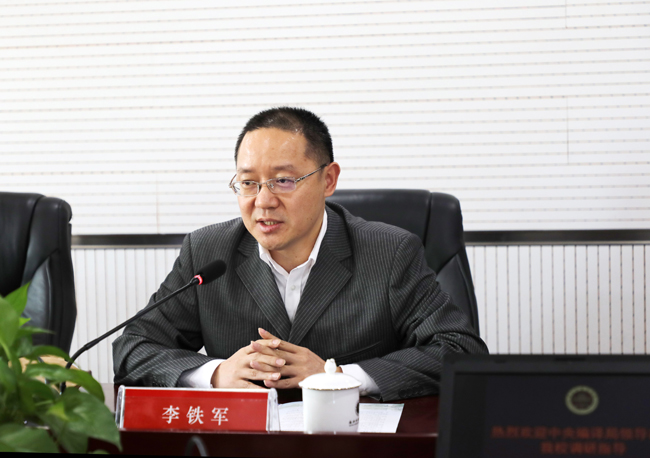 3月26日,中共中央编译局中央文献翻译部副主任李铁军等专家一行4人莅临开云官网调研指导。校长洪岗参加调研会。校党委副书记赵伐主持会议。