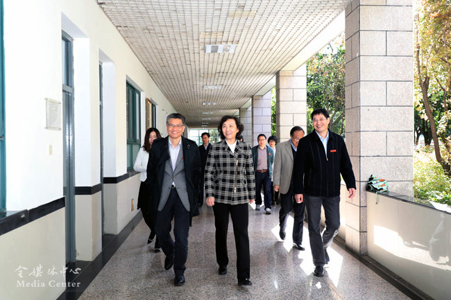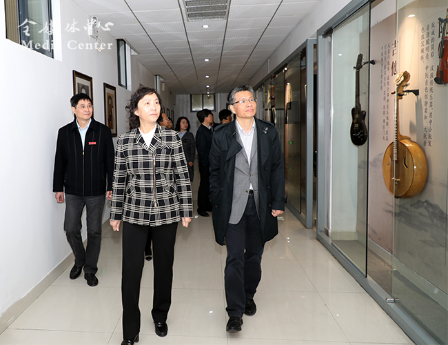 王文序一行对学校进行实地考察,校党委书记宣勇、校长洪岗陪同。王文序先后听取了相关教师及学生代表关于“青年学子学青年习近平”学习教育、校园文化建设、语言文化体验室、非遗工作室、国际志愿者、艺术学院建设等情况汇报。并对实验室的软硬件建设、非遗工作室的文化传承与传播、艺术学院的墙面文化等做出了指导。
