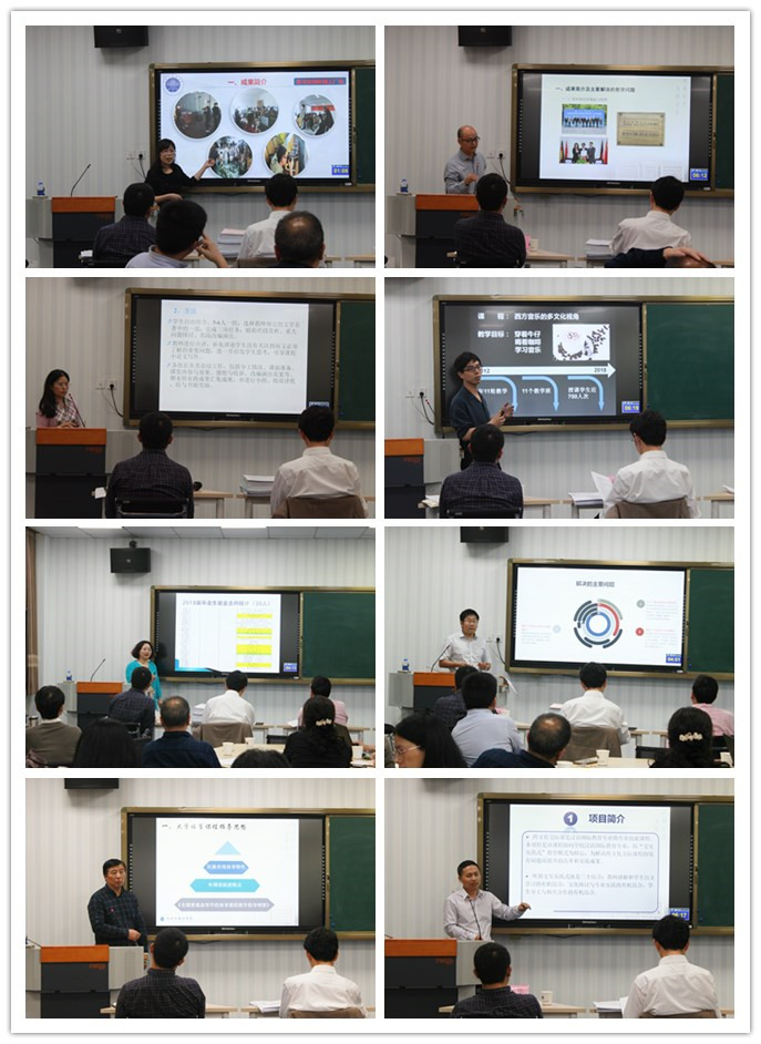 会上,各项目团队负责人向与会专家汇报了各自的教学成果建设情况。