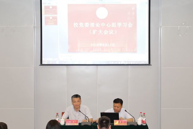 5月17日下午,学校举行党委理论学习中心组(扩大)专题学习会,校党委书记宣勇主持并讲话,校长洪岗和校党委理论学习中心组其他成员、全体中层干部参加会议。