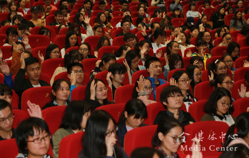 以校训为精神支柱,将这股精神源泉注入到学习中,学习将获得不竭的动力。洪岗指出,大学四年的投入程度决定了未来的发展高度。首先要在开头打下坚实的基础,要学习“毛竹”的精神,在前阶段扎扎实实地往下扎根,在后期厚积薄发、快速生长,使竹林成为一道别样的风景。同样的,做学问要踏踏实实、扎根基础,熬过开头这几年,尽情释放积蓄已久的力量。其次要知行结合,善于抓住机会,积极参与大学期间的实践创新活动,在国际交流中开拓眼界、增长见识,不仅对专业有更深的了解,也为将来的就业打下坚实的基础。洪岗引用习总书记“大众创业、万众创新是时代潮流”的话,鼓励同学们激发创新思维,多方式就业。