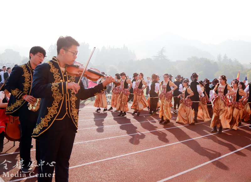 11月2日上午,浙外田径场上,学校第八届运动会拉开了帷幕,各学院的运动健儿们集结待发。党委书记宣勇等校党政领导班子出席开幕式。党委副书记赵伐主持开幕式。